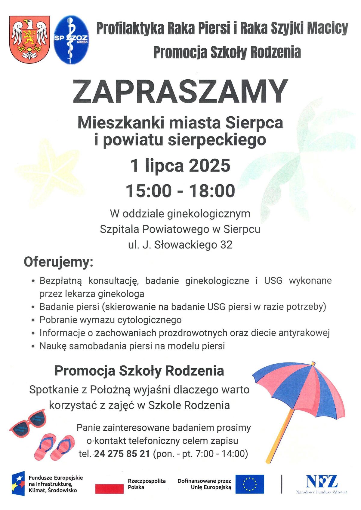 Profilaktyka raka piersi i raka szyjki macicy. Promocja szkoły rodzenia.