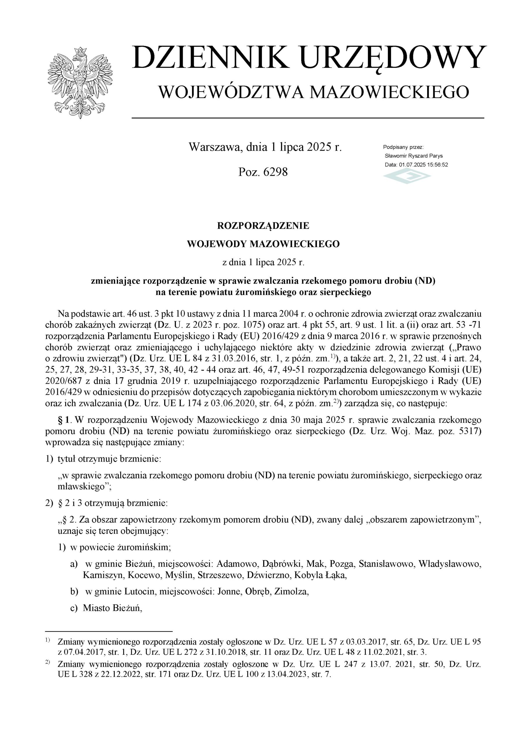 ROZPORZĄDZENIE WOJEWODY MAZOWIECKIEGO w sprawie zwalczania rzekomego pomoru drobiu (ND)