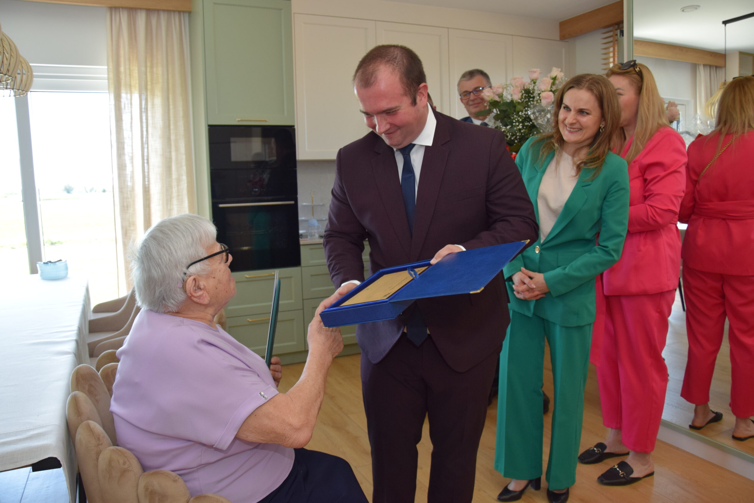 Z tej okazji miałem przyjemność odwiedzić dostojną Jubilatkę razem z Kierownikiem Delegatury Urzędu Wojewódzkiego Bogdan Banaszczak, Kierownikiem KRUS w Sierpcu Zbigniewem Tomaszewskim, Przewodniczącym Rady Gminy Zawidz Mariuszem Radeckim, Radną Gminy Zawidz Sylwią Marecką, Sekretarzem Gminy Mirosławem Ziółkowskim oraz Kierownik USC Sylwią Kluska. Z okazji tak pięknego jubileuszu podziękowaliśmy Jubilatce za pięknie przeżyte lata, a w imieniu mieszkańców gminy złożyliśmy najserdeczniejsze życzenia wszelkiej pomyślności, zdrowia, pogody ducha oraz dalszych długich lat życia w jak najlepszym zdrowiu.
