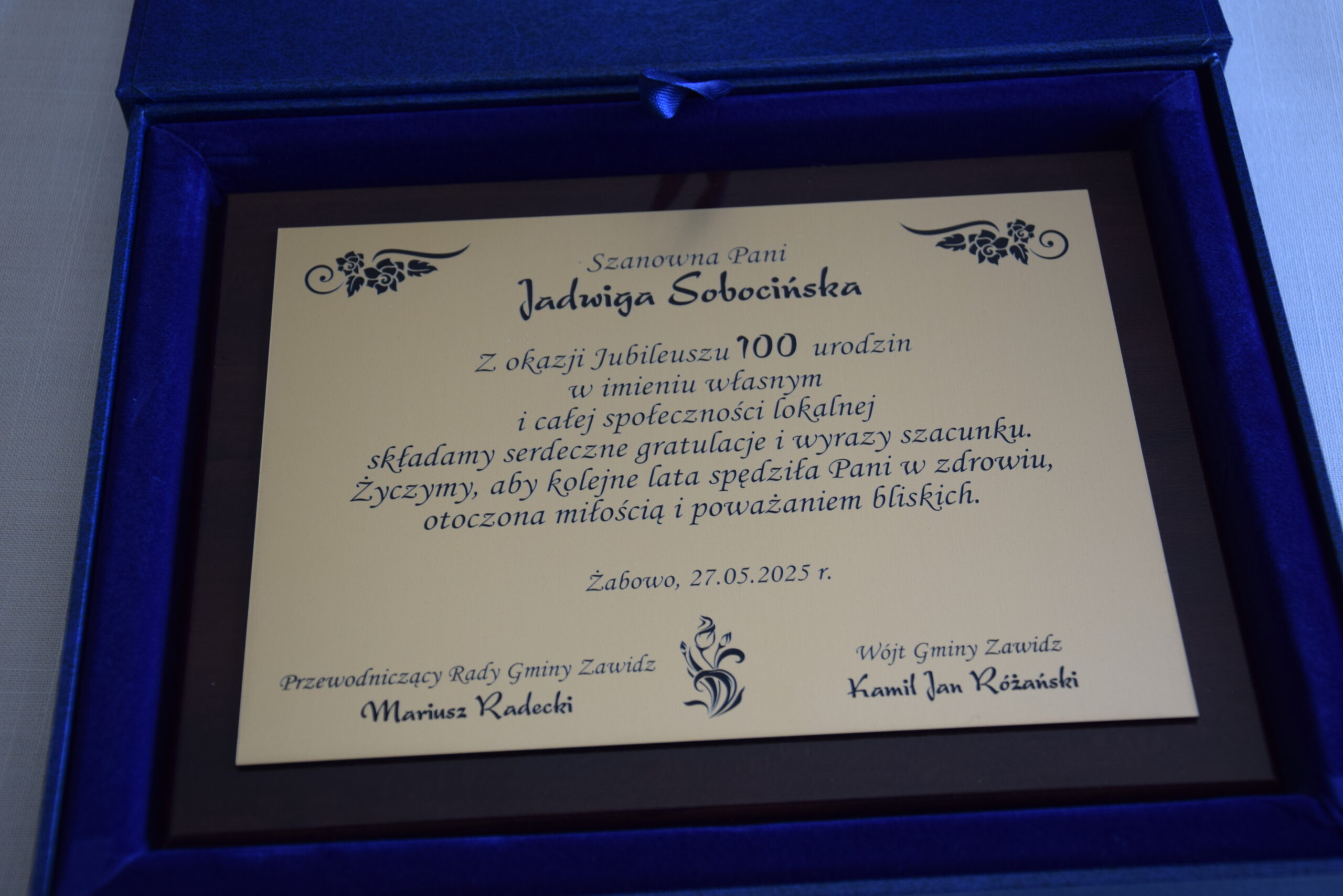 Setne urodziny to doniosły moment i niecodzienna chwila. To wyjątkowa i piękna uroczystość, która nie zdarza się często. 27 maja 2025 r. swoje setne urodziny obchodzi mieszkanka naszej gminy – Pani Jadwiga Sobocińska zamieszkała w Żabowie. W naszej Gminie tak niecodzienne i doniosłe uroczystości zdarzają się niezwykle rzadko.