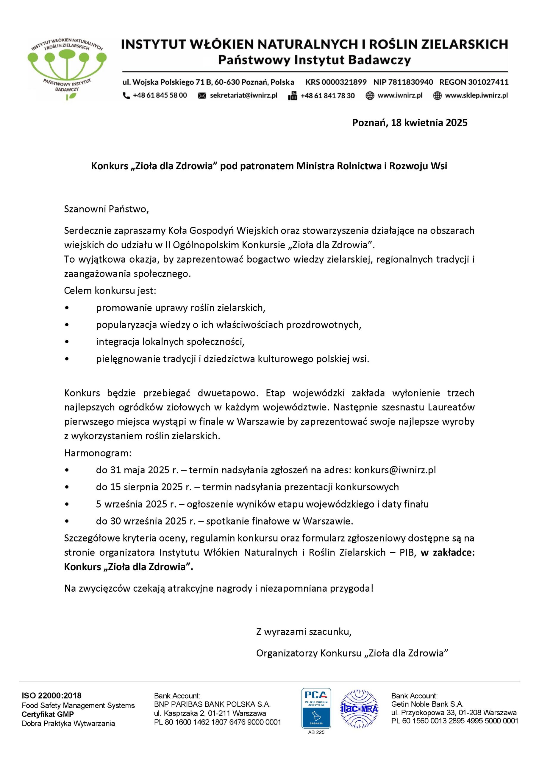 „Zioła dla zdrowia” – Konkurs dla KGW